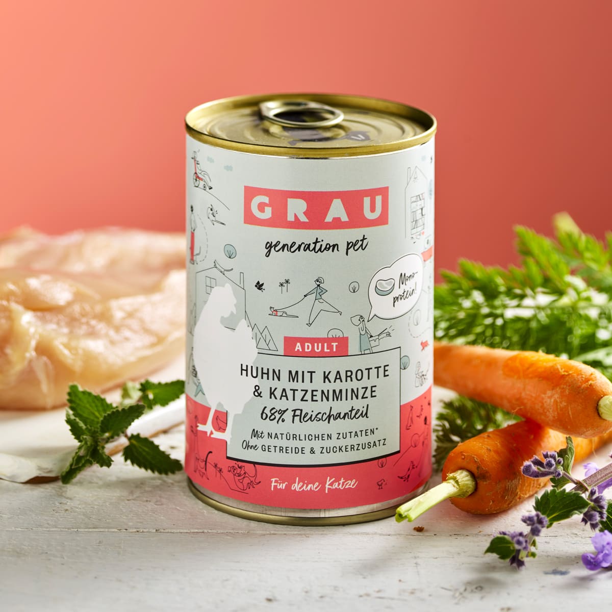 Toute la nourriture naturelle pour chats de la marque Grau.